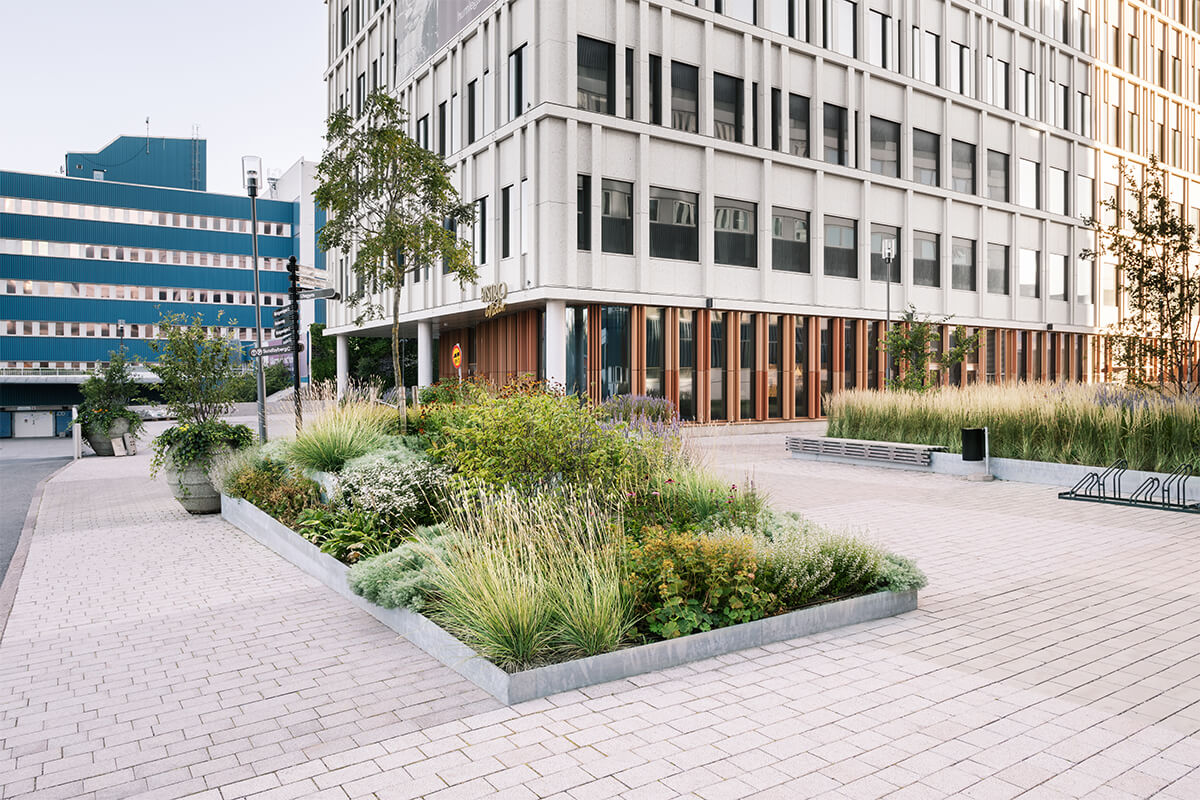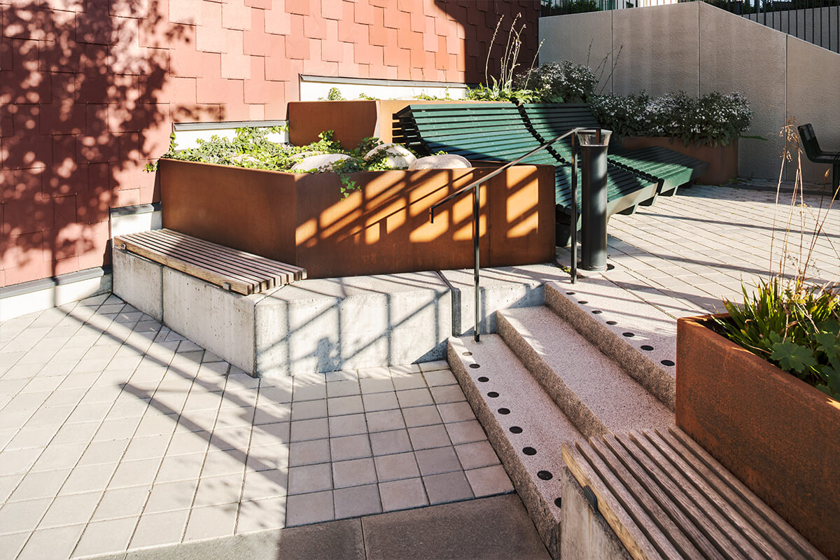With steel you have full design freedom. Include benches, bike racks, lighting, and more. Be creative and work with modules in different heights and choose from various surfaces and different colour options to fit your project. Our steel edging is EPD certified.